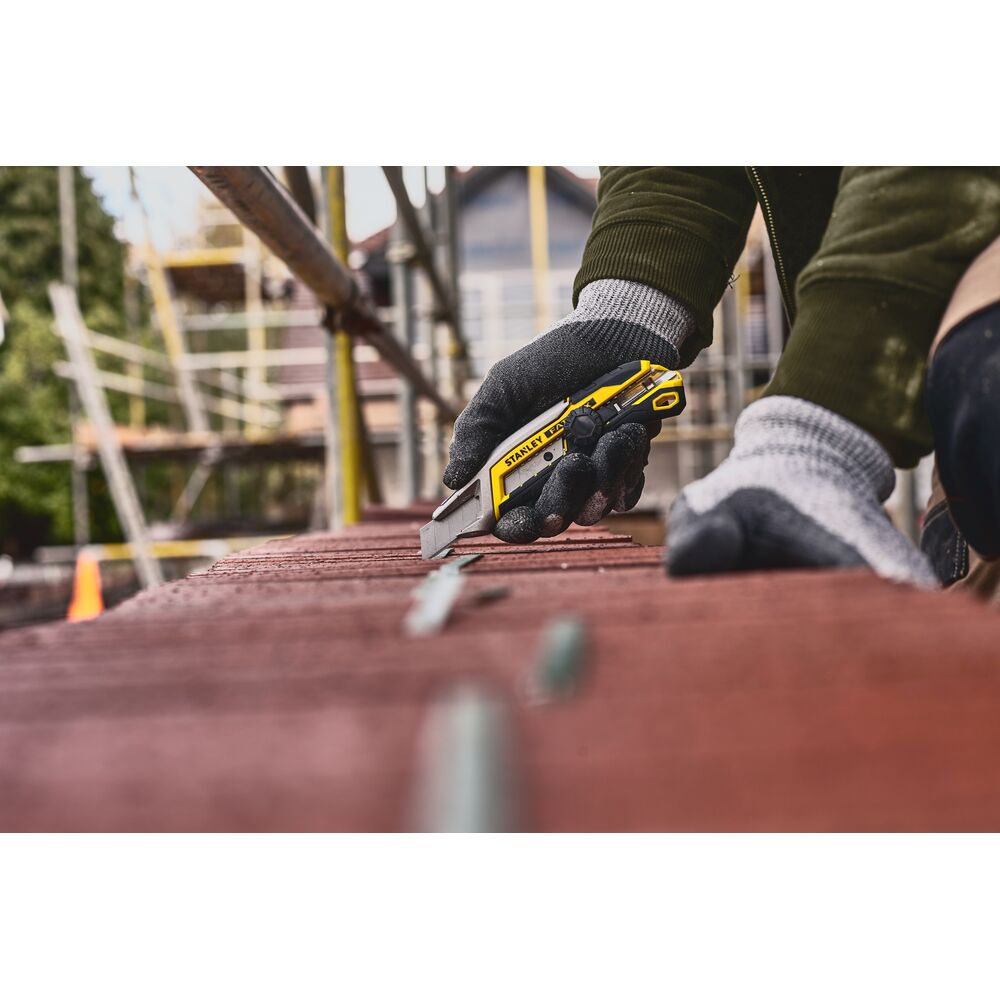 Este cúter Stanley está diseñado para profesionales que necesitan cortes rápidos, precisos y seguros. La anchura de 18 mm permite un mayor rendimiento y el mecanismo de segmentado integrado facilita renovar el filo sin herramientas.